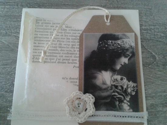 Ruim eromheen. De label is van stof. Met sjabloon opgepimpt.